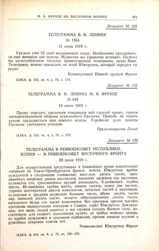 Телеграмма В.И. Ленину. № 1564. 15 июня 1919 г. // ЦАКА, ф. 254, оп. 4, д. 73, л. 174.