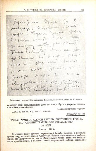 Главная М.В. Фрунзе на фронтах гражданской войны Документы Приказ армиям южной группы Восточного фронта (по административному ...