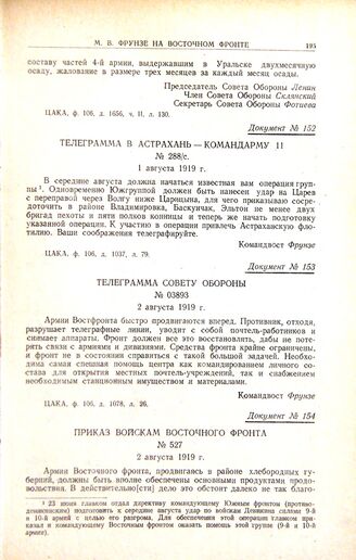 Главная М.В. Фрунзе на фронтах гражданской войны Документы Телеграмма в Астрахань — командарму 11. № 288/с. 1 августа 1919 г.
