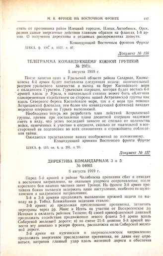 Телеграмма командующему южной группой. № 297/с. 5 августа 1919 г.