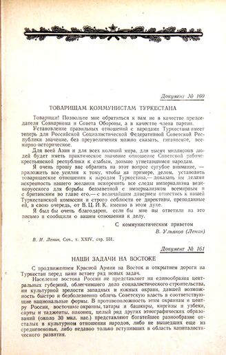 Товарищам коммунистам Туркестана // В.И. Ленин, Соч., т. XXIV, стр. 531.