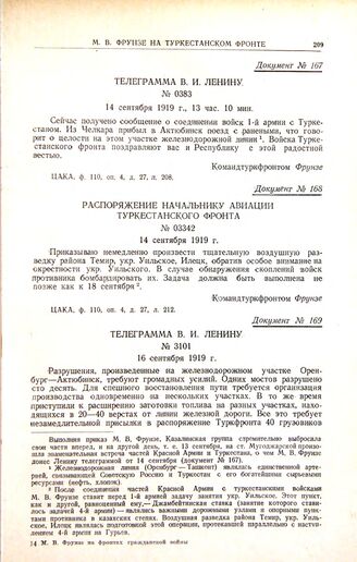 Распоряжение начальнику авиации Туркестанского фронта. № 03342. 14 сентября 1919 г. // ЦАКА, ф. 110, оп. 4, д. 27, л. 212.