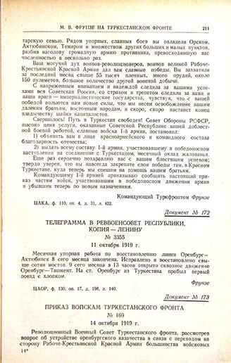 Приказ войскам Туркестанского фронта. № 169. 14 октября 1919 г. // ЦАКА, ф. 110, оп. 4, д. 25, л. 178.