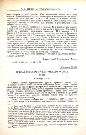 Приказ войскам Туркестанского фронта. № 150. 4 октября 1919 г.