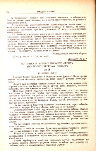 Главная М.В. Фрунзе на фронтах гражданской войны Документы Из приказа Туркестанскому фронту (по Политическому отделу). № 28. 2...