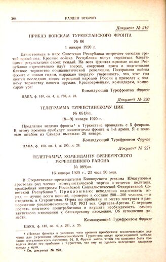 Приказ войскам Туркестанского фронта. № 06. 1 января 1920 г. // ЦАКА, ф. 110, оп. 4, д. 788, л. 23.