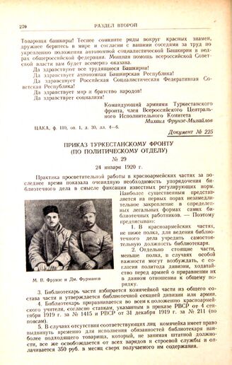 Приказ Туркестанскому фронту (по Политическому отделу). № 29. 24 января 1920 г. // ЦАКА, ф. 110, оп. 8, д. 495, л. 24.