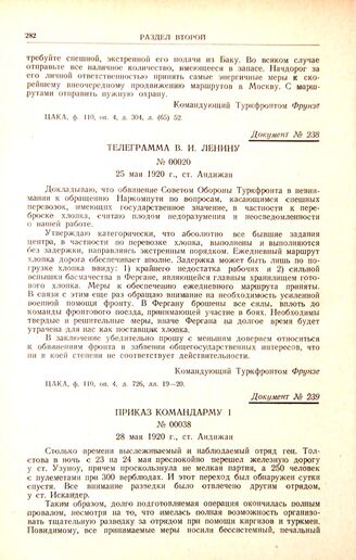 Главная М.В. Фрунзе на фронтах гражданской войны Документы Телеграмма В И. Ленину. № 00020. 25 мая 1920 г., ст. Андижан