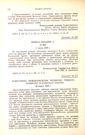 Приказ начдиву 3. № 809. 1 марта 1920 г. // ЦАКА, ф. 110, оп. 4, д. 287, лл. 3—4.