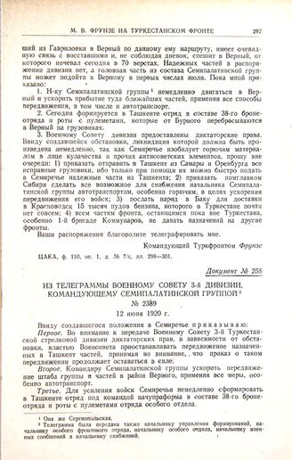 Из телеграммы военному совету 3-й дивизии, командующему Семипалатинской группой. № 2389. 12 июня 1920 г.
