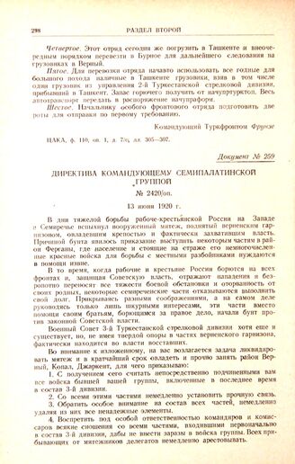 Директива командующему Семипалатинской группой. № 2420/оп. 13 июня 1920 г.