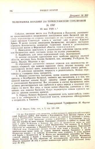 Главная М.В. Фрунзе на фронтах гражданской войны Документы Телеграмма начдиву 2-й Туркестанской стрелковой. № 1787. 15 мая 192...