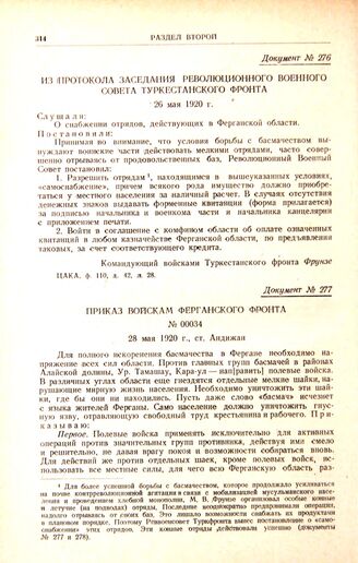 Главная М.В. Фрунзе на фронтах гражданской войны Документы Приказ войскам Ферганского фронта. № 00034. 28 мая 1920 г., ст. Анд...
