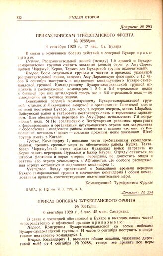 Приказ войскам Туркестанского фронта. № 00312/пш. 6 сентября 1920 г., 8 час. 45 мин., Самарканд