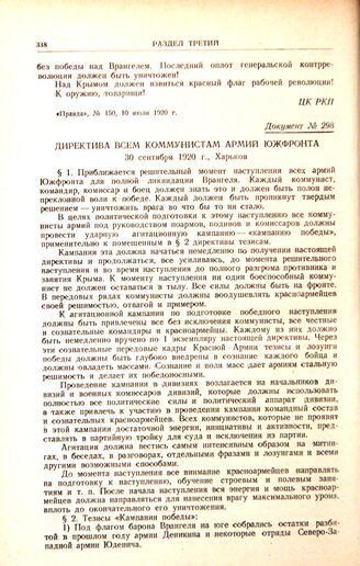 Директива всем коммунистам армий Южфронта. 30 сентября 1920 г., Харьков