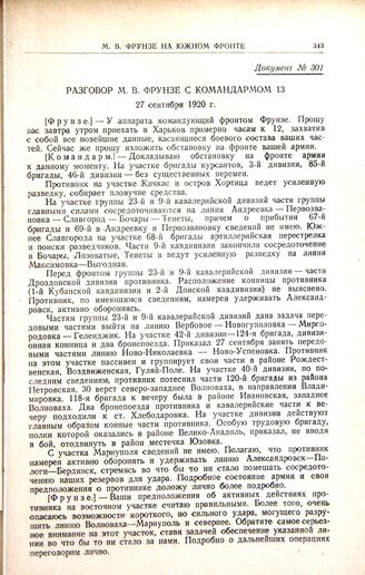 Разговор М.В. Фрунзе с командармом 13. 27 сентября 1920 г.