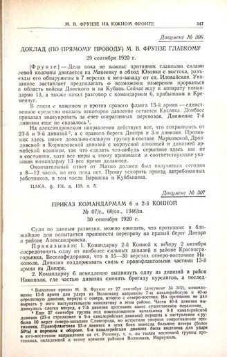 Приказ командармам 6 и 2-й конной. № 07/с., 60/оп., 1346/ш. 30 сентября 1920 г. // ЦАКА, ф. 246, оп. 4, д. 13, л. 1.
