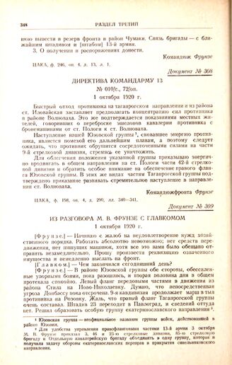 Главная М.В. Фрунзе на фронтах гражданской войны Документы Директива командарму 13. № 010/с., 72/оп. 1 октября 1920 г.