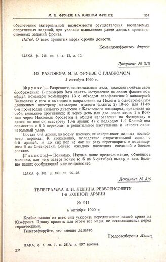 Телеграмма В.И. Ленина Реввоенсовету 1-й конной армии. № 914. 4 октября 1920 г.