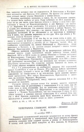 Телеграмма главкому, копия — Ленину. № 4/с. 11 октября 1920 г. // ЦАКА, ф. 101, оп. 1, д. 6/c, л. 42.