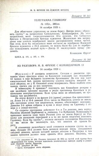 Из разговора М.В. Фрунзе с командармом 13. 14 октября 1920 г. // ЦАКА, ф. 101, л. 164, лл. 125—128.