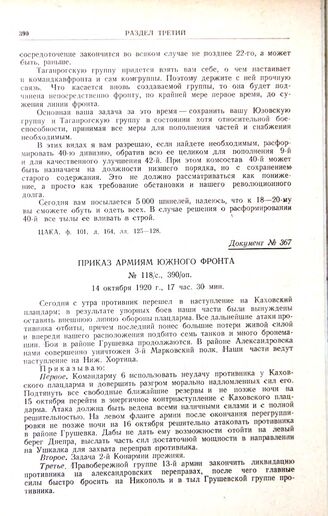 Приказ армиям Южного фронта. № 118/с., 390/оп. 14 октября 1920 г., 17 час. 30 мин // ЦАКА, ф. 101, д. 135, лл. 19—20.