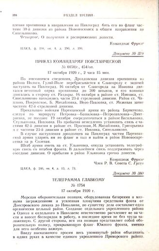 Главная М.В. Фрунзе на фронтах гражданской войны Документы Приказ командарму повстанческой. № 0150/с., 454/оп. 17 октября 1920...