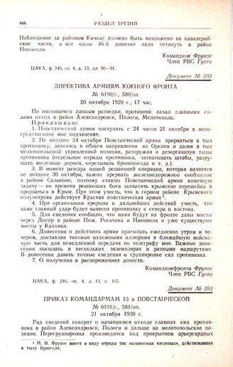 Приказ командармам 13 и повстанческой. № 0191/с., 581/оп. 21 октября 1920 г. // ЦАКА, ф. 246, оп. 4. д. 13, л. 104.
