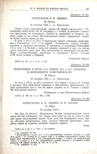 Главная М.В. Фрунзе на фронтах гражданской войны Документы Телеграмма В.И. Ленину. № 001/пш. 26 октября 1920 г., ст. Апостолово