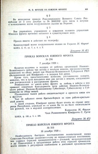 Приказ войскам Южного фронта. № 313. 10 декабря 1920 г. // ЦАКА, ф. 122, д. 5, л. 345.