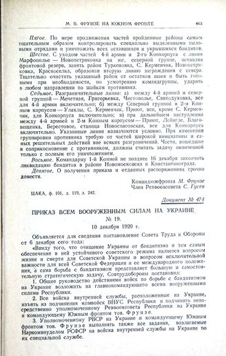 Приказ всем вооруженным силам на Украине. № 19. 10 декабря 1920 г.