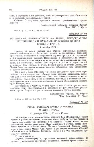 Главная М.В. Фрунзе на фронтах гражданской войны Документы Приказ войскам Южного фронта. № 0546/с., 1707/оп. 17 декабря 1920 г...