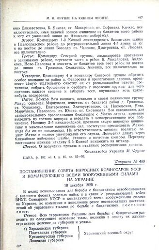 Постановление Совета Народных Комиссаров УССР и командующего всеми вооруженными силами на Украине. 18 декабря 1920 г.