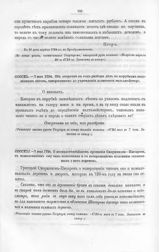 Высочайшие указы и повеления Императора Петра I, данные правительствующему сенату. О всемилостивейшем прощении Скорнякова-Писарева, с пожалованием ему чина полковника и с возвращением половины отписанных у него деревень. 1724-го мая в 7 день // Из архива правительствующего сената.