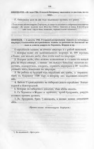 Высочайшие указы и повеления Императора Петра I, данные правительствующему сенату. О порядке распределения полков на постоянные квартиры; о назначении из армейских полков к работам на Ладожский канал и о взятии рекрут с Черемис, Мордвы и др. 4 августа 1724 // Из архива правительствующего сената.