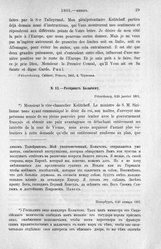 Рескрипт Колычеву. Петербург, 8/20 января 1801 г. [1] // Pétersbourg. Paris, 1801, 31. Подлинник.
