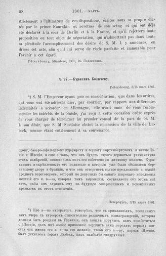 Куракин Колычеву. Петербург, 3/15 марта 1801 г. // Pétersbourg. Paris, 1801,47. Подлинник.
