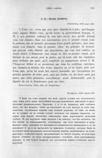 Пален Колычеву. Петербург, 19/31 марта 1801 г. [1] // Pétersbourg. Paris, 1801, 49. Подлинник.