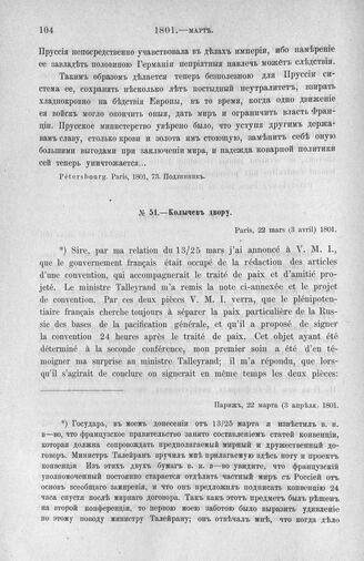 Колычев двору. Париж, 22 марта (3 апреля) 1801 г. [1] // Pétersbourg. Paris, 1801, 75. Подлинник.