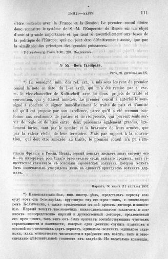 Нота Талейрана. Париж, 30 марта (11 апреля) 1801 г.