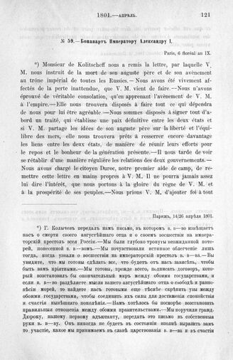 Бонапарт Императору Александру I. Париж, 14/26 апреля 1801 г.