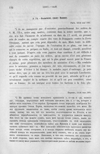 Колычев графу Панину. Париж, 12/24 мая 1801 г. // Pétersbourg. Paris, 1801, 160. Подлинник.