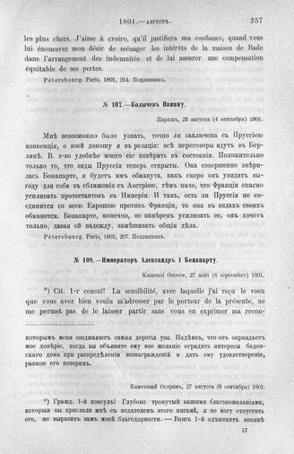 Колычев Панину. Париж, 23 августа (4 сентября) 1801 г. // Pétersbourg. Paris, 1801, 207. Подлинник.