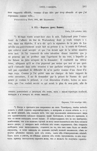 Морков графу Панину. Париж, 7/19 октября 1801 г. // Pétersbourg. Paris, 1801, 270. Подлинник.