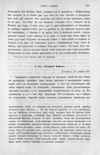 Рескрипт Моркову. Петербург, 5/17 декабря 1801 г. // Pétersbourg. Paris, 1801, 225. Подлинник.