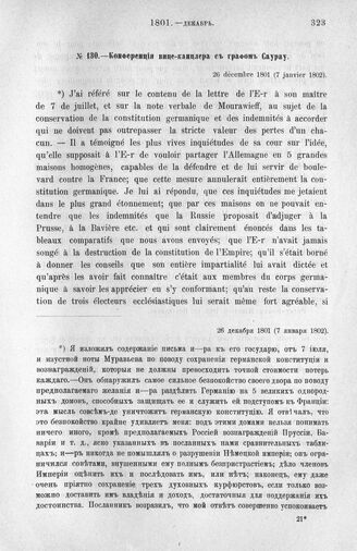 Конференция вице-канцлера с графом Саурау. 26 декабря 1801 г. (7 января 1802 г.) // Pétersbourg. Ministère, 1801, 63. Подлинник.