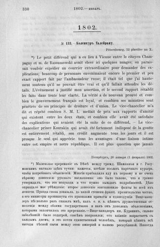 Коленкур Талейрану. Петербург, 20 января (1 февраля) 1802 г.