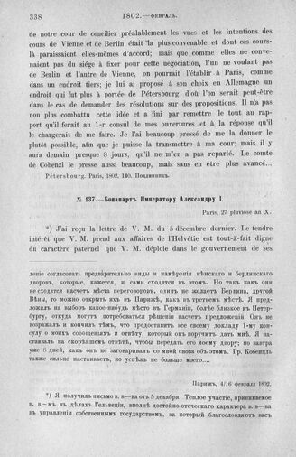 Бонапарт Императору Александру I. Париж, 4/16 февраля 1802 г.