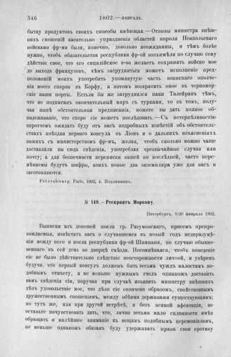 Рескрипт Моркову. Петербург, 8/20 февраля 1802 г. [2] // Pétersbourg. Paris, 1802, 5. Подлинник.