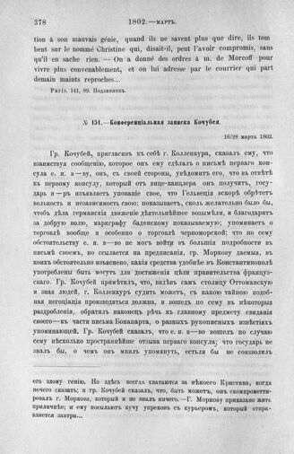 Конференциальная записка Кочубея. 16/28 марта 1802 г. // Pétersbourg. Ministère, 1802, 45. Подлинник.